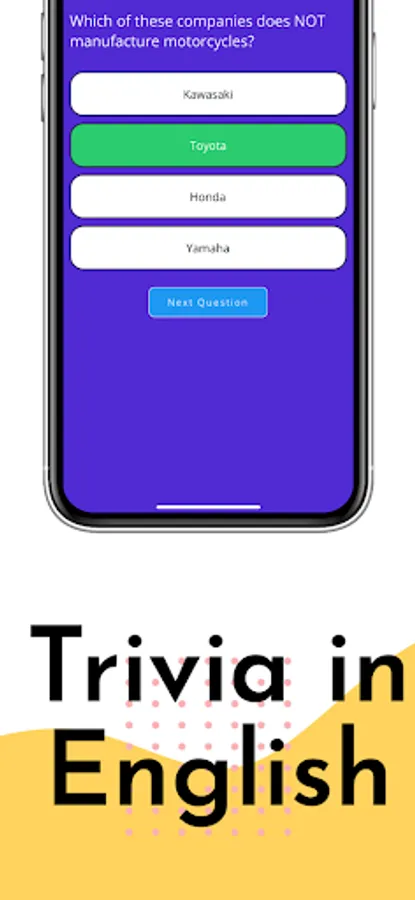 The app's multiple-choice question format allows you to choose from a set of possible answers, with varying levels of difficulty to suit your individual skill level. Whether you are a beginner or an experienced language student, "Trivia in English" has something to offer you.