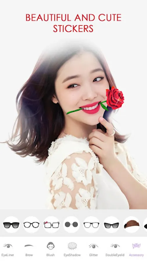 ♦ Integrate stickers on top of images and apply different accessories to photos such as goggles, hats, crown.