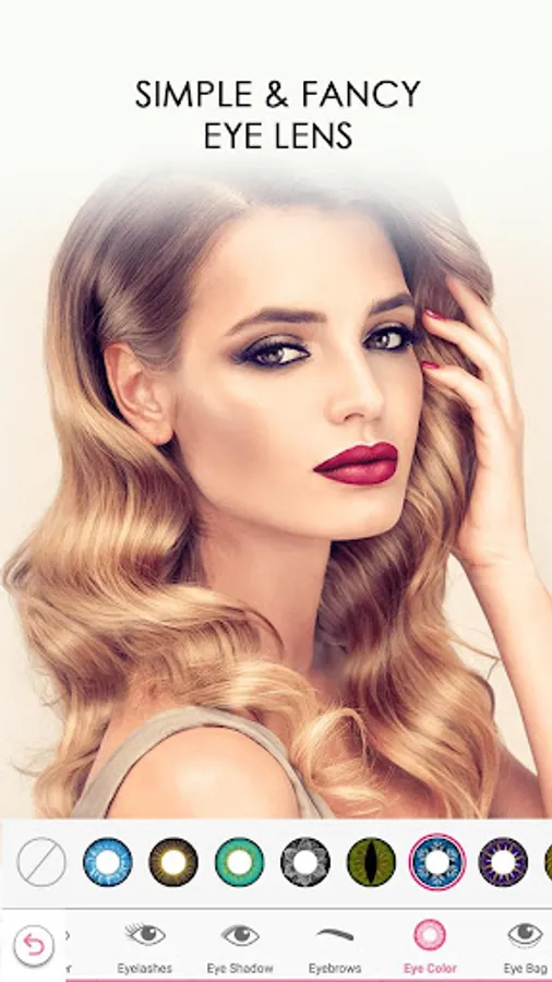 Eyes tool: Have a new eye design to replaces your eyes in photos. Make eyes brighter and wider. With different eye colors make your face pop up your photos.