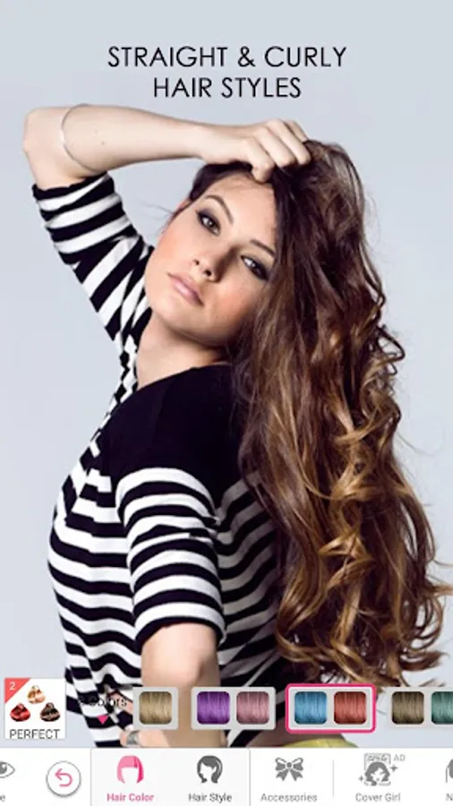 💇♀️ Hairstyles and colors: Have a completely new hairstyle, choose from lengthy, curly, short or straight hairstyles. Change hair color in your photos with Hair colorizer and apply from blonde hair to burgundy hair colors.