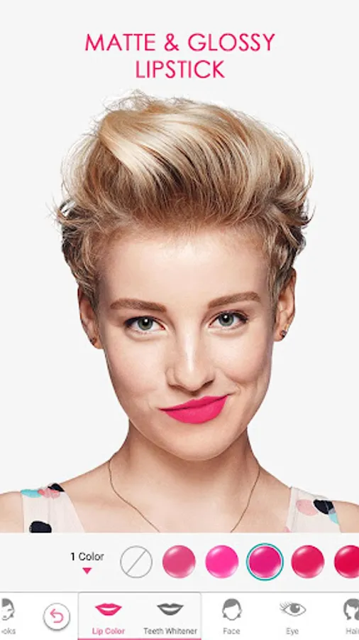 Create your unique makeup looks, have a new hairstyle and change your eye color, hair color and lips color instantly with the advanced makeover application. Do all the adjustments in real-time on your photos and flaunt a new cool stylish look.