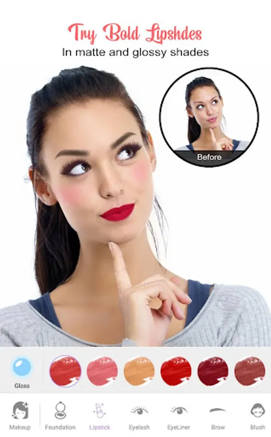 This best makeup apps to completely transform your daily pictures has powerful photo processing and smart facial recognizer for perfect makeup application. Soften the skin tone, apply different shades to lips, change hair color, have new eye color and with teeth whitening tool have sparkling teeth.