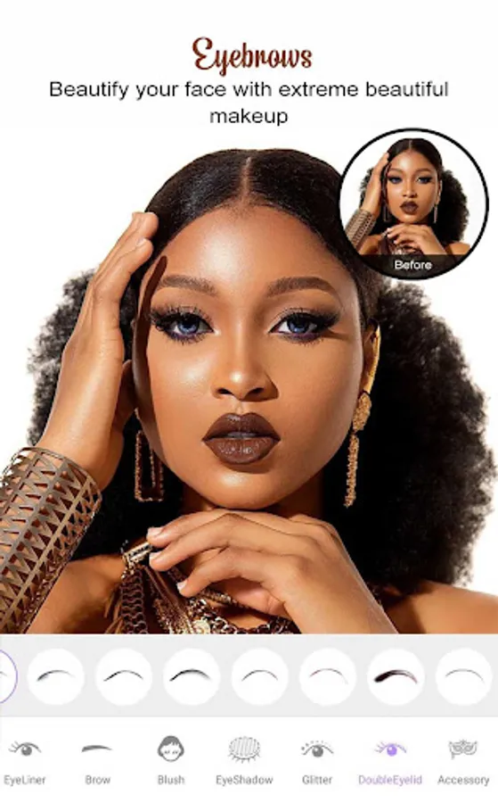 Perfect Sweet Makeup Camera-Virtual Makeover is a powerful makeup application with picture editor and many effects. In this makeup app, you get different ways to apply special makeover features to have flawless skin tone, beautiful bright eyes, perfect blush, prominent lips, fabulous eyelashes and new cool hairstyle.