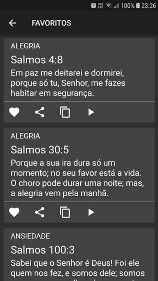 You can keep promises in the favorites option, share with friends and family. It has the option of speaking the verses of the Promises and the Bible.