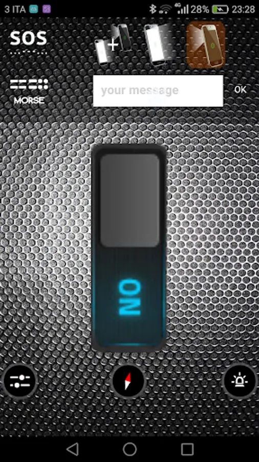 - The Morse code SOS integrated with the ability to transmit any phrase translated into Morse code.