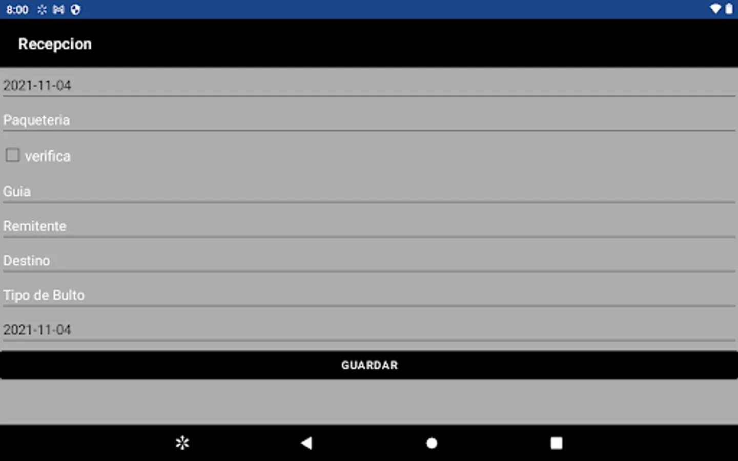 The purpose of the application is to register the shipments and parcel receipts of the corporate GRUPOEI, in addition to registering the entries of people outside the company.