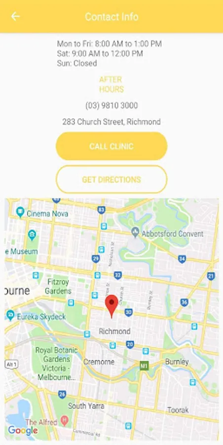 Allows you to Book an Appointment, Contact the Medical Centre easily, get directions to the Clinic, view Practice Info, After Hours Care details and Practice Services, all from your Mobile Device.