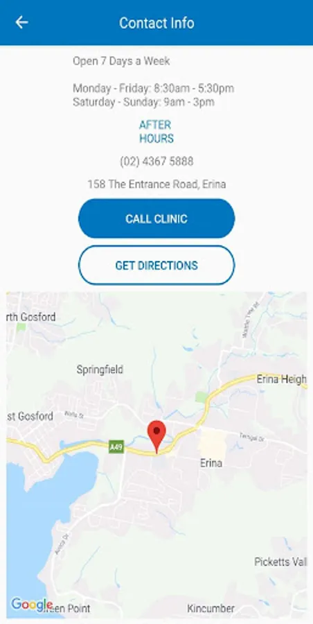 Allows you to Book an Appointment, Contact the Medical Centre easily, get directions to the Clinic, view Practice Info, After Hours Care details and Practice Services, all from your Mobile Device.