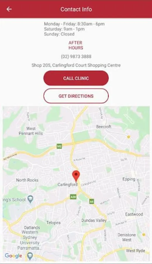 Allows you to Book an Appointment, Contact the Medical Centre easily, get directions to the Clinic, view Practice Info, After Hours Care details and Practice Services, all from your Mobile Device