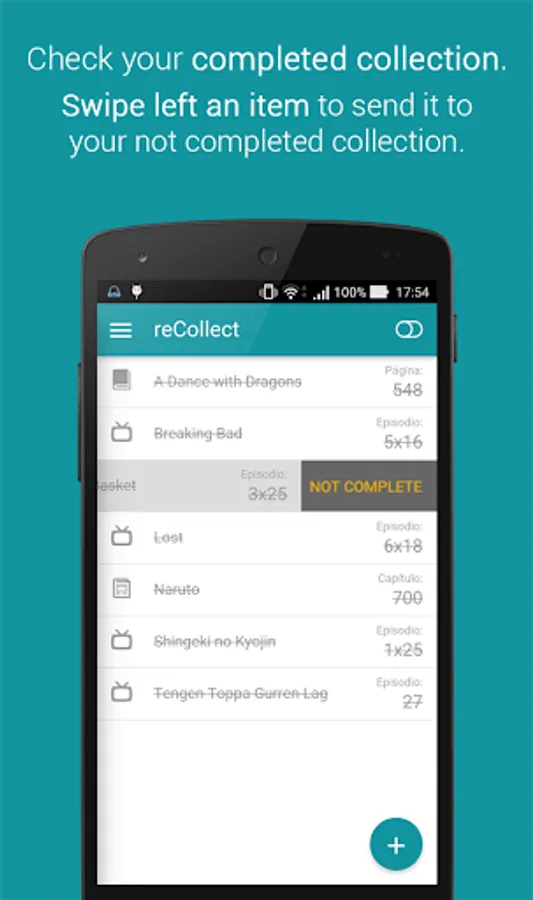In a single application (free and without ads) you will have all your entire collection of movie series, TV shows, comics and books, etc perfectly organized to always keep track of your progress without thinking which is the next episode or page you are going to watch or read.