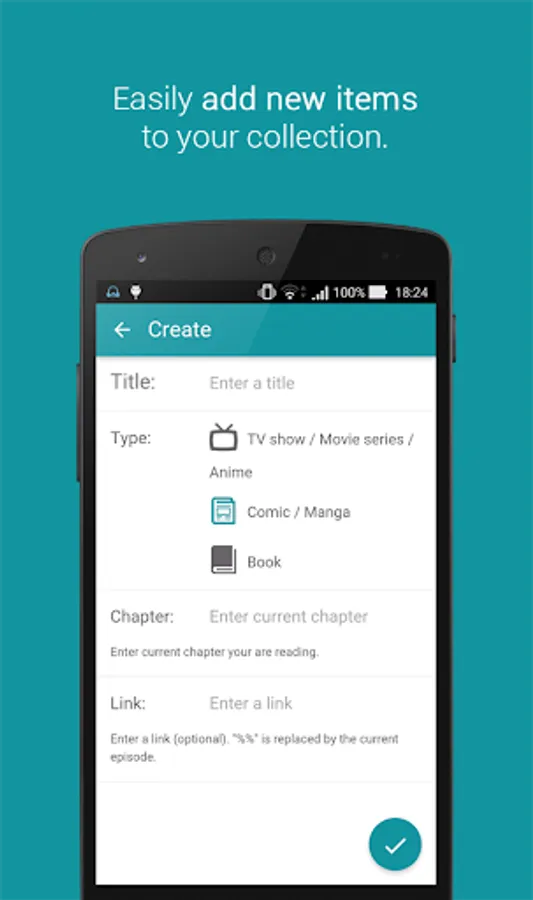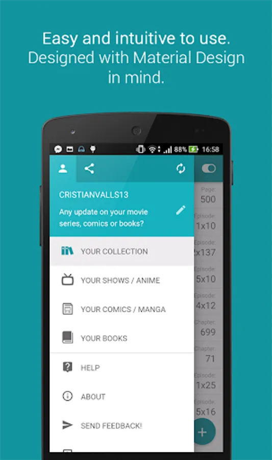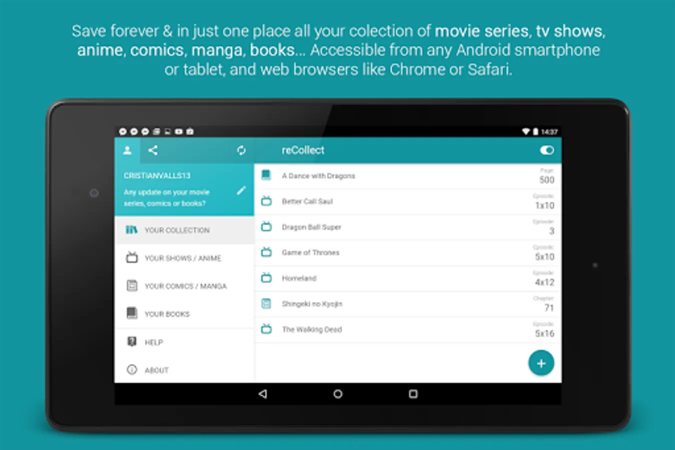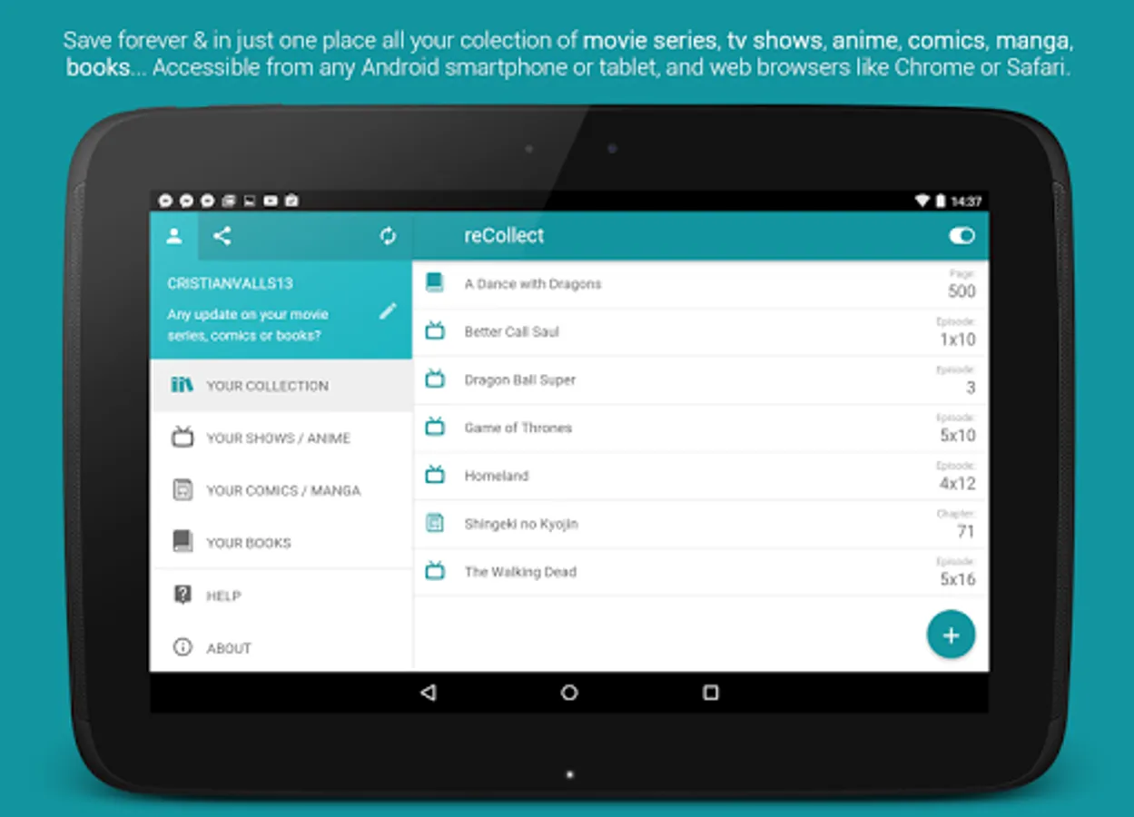 Organize & keep track of all your collection of movie series, TV shows, anime, manga, comics and books.