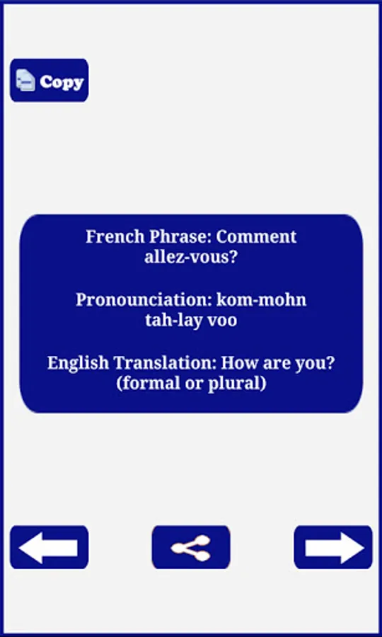 The Romance Language of French is spoken by 370 million people worldwide. Historically, French was adopted by the invading Germanic group of Franks, and it was influenced by Germanic elements, Latin and the Gaulish language. From its origin in France, French is also spoken in Belgium, Luxembourg, Switzerland, Canada, Ivory Coast, Mali, and Haiti. This application will especially help them, who either wants to learn French or they are travelling to any French speaking country. There are some phrases that are particularly helpful to international travelers. Also several phrases that might come in handy during your stay in a French-speaking country. You will use slightly different variations of these words depending on who you are referring to and how well you know them.