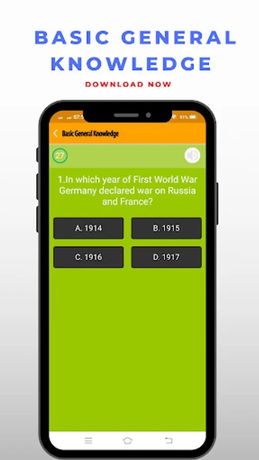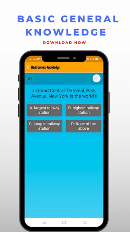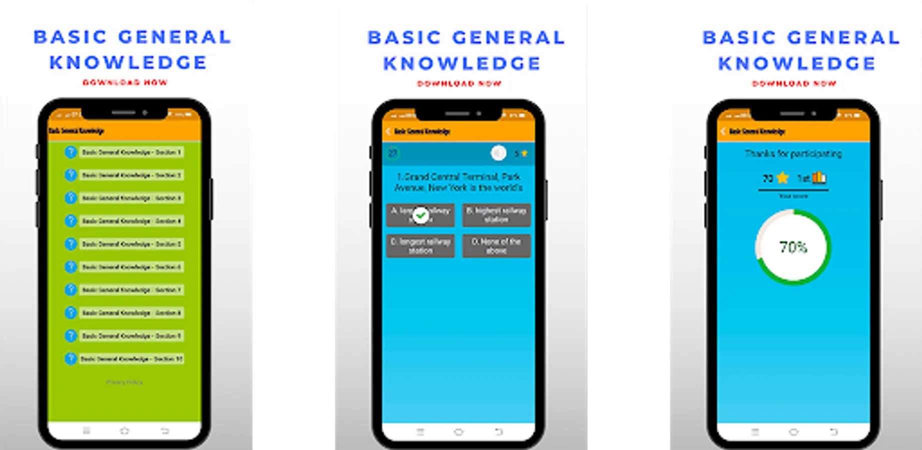 General Knowledge Quiz is an educative and informative android app that contains advanced, social, and facts-based everyday science multiple-choice questions to test and improve general knowledge in various categories.
