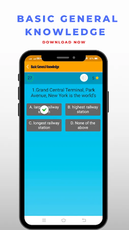 General Knowledge: basic general knowledge English is an educative and useful free android application that contains the free different decision questions, particularly for understudies to improve their overall information in ordinary science realities and other different classes in an equipped manner.