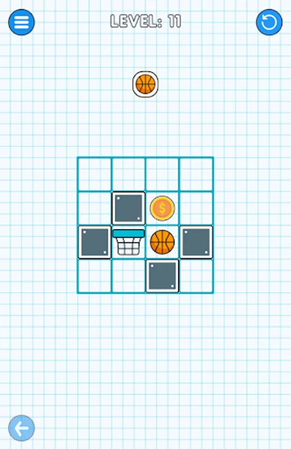Basketball puzzle game, one hundred stages, fun for smart people. You have to get the ball to the basket by bypassing the blocks, by solving the puzzle, which becomes more difficult as you advance in the stages. A free game brought to you by our free mobile games app