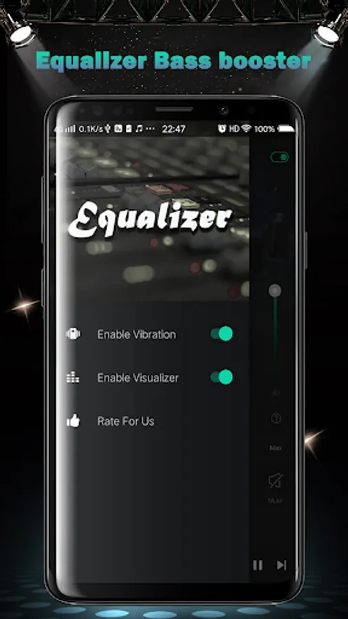 * Turn on the Bass Booster & Equalizer application and adjust sound level and frequency.