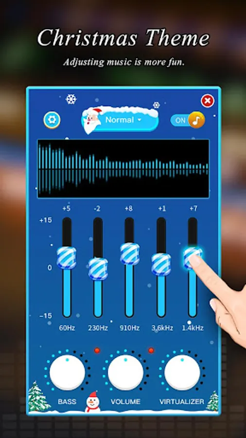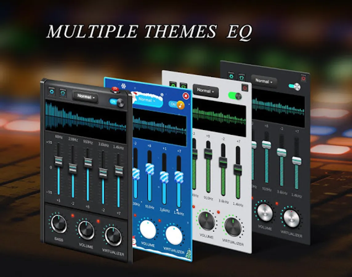 ♪ 6 Colorful themes equalizer(Technology Blue, Metal Style, Christmas Style, Fluorescent Green, Flame Red, Cyan-Blue)