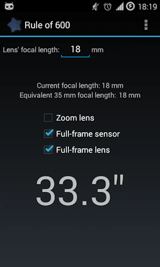 As you may know, stars move. Rule of 600 app helps you set shutter speed in astrophotography by focal lenght, type of sensor and lens, respectively. It calculates maximum time using the rule of 600 that allows clear photograph (stars doesn't turn in egg-shape or trails).