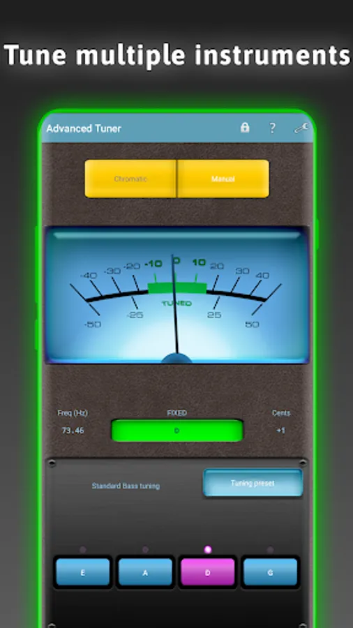 Advanced Tuner is the definitive tool for tuning any musical instrument: electric and acoustic guitar, bass, violin, banjo, mandolin, ukulele, etc. Made by audio engineers, very easy to use and intuitive. Precise and fast audio algorithm.