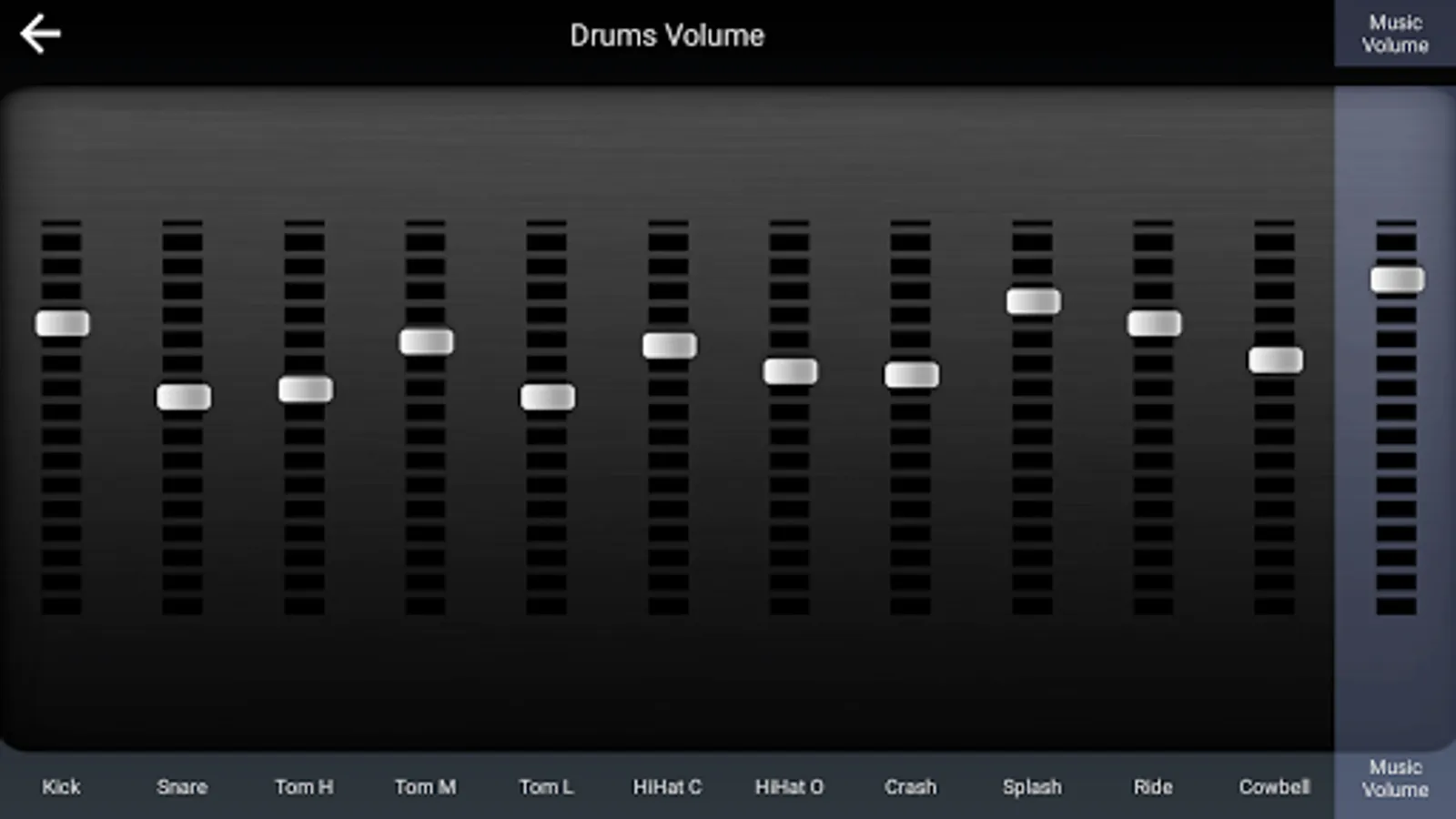 - Equalize sounds volumes of each instrument and global music in the mixer screen