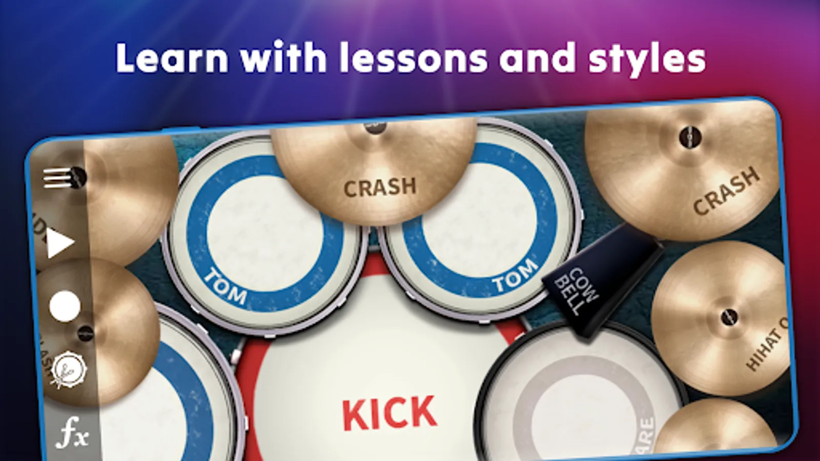 - Start jamming on top of pre-recorded backing tracks of different styles, creating an interactive drumming experience.