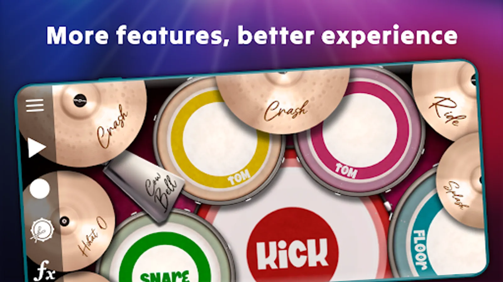- Adjust individually the volume of each instrument and the background music, giving you complete control over the sound of your drumming