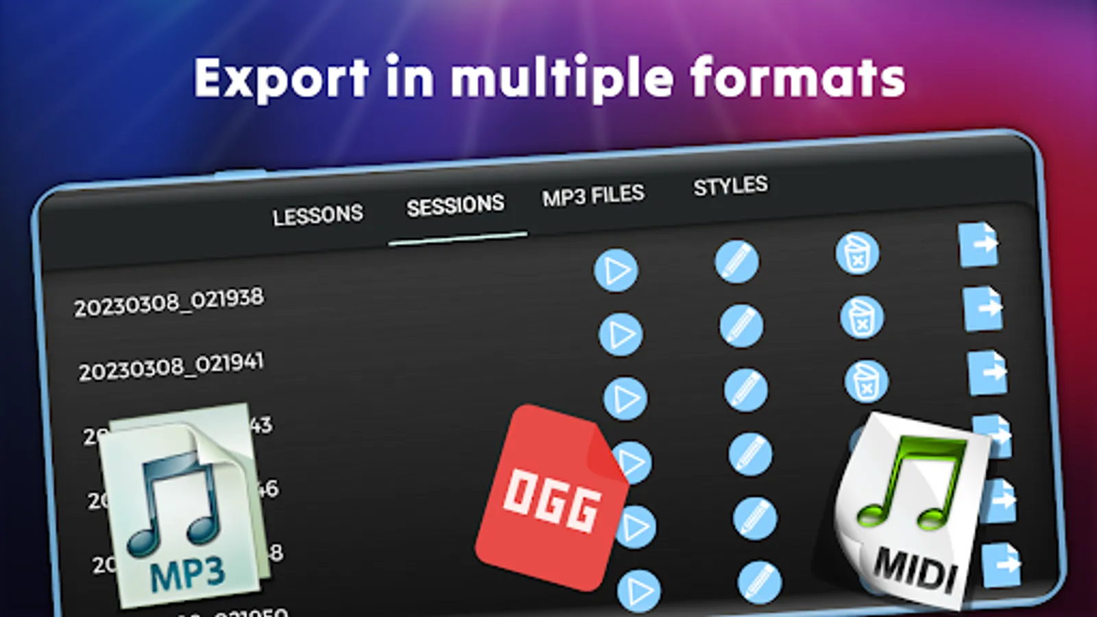 - Export your loops to MP3, OGG, MIDI and PCM WAV and share the file with your friends
