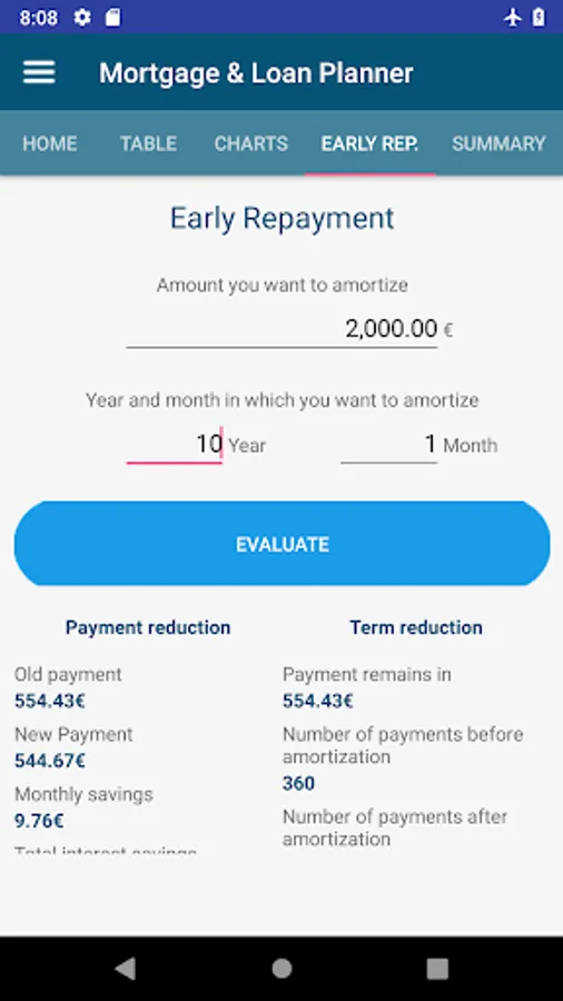 Mortgage and Loan Simulator is an advanced calculator to help yo to take the difficult decision to sign a contract with the bank. Easy to use and intuitive, it contains tools from the most basic (payment calculation) to the most advanced, such as early repayment or fully interactive graphics, to help your economy. The main features are: