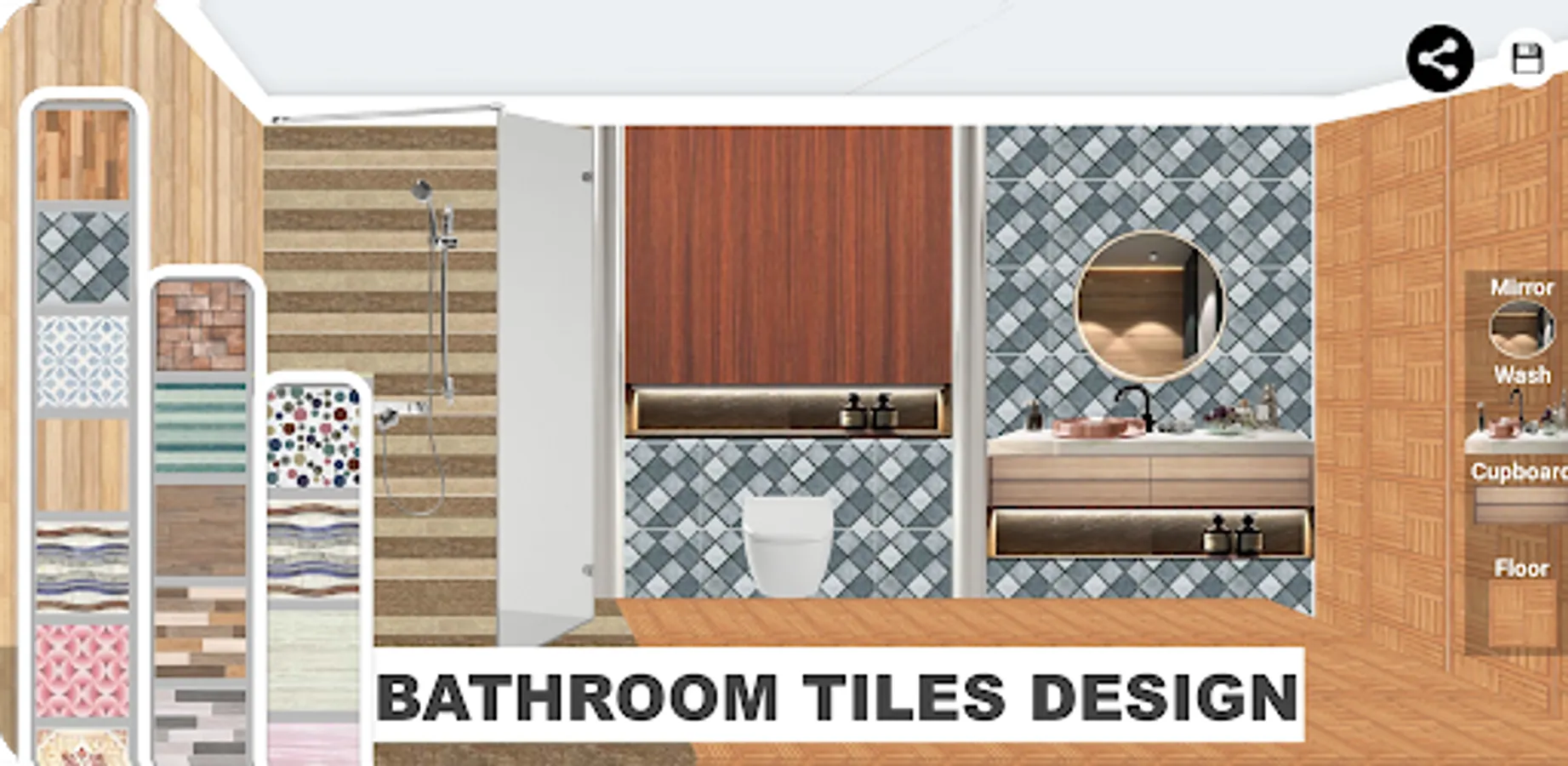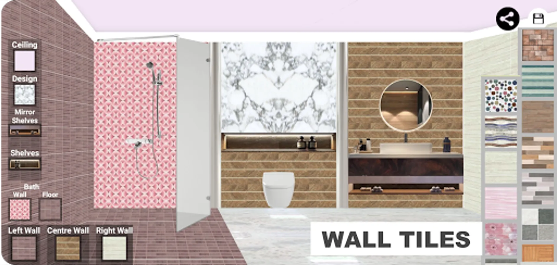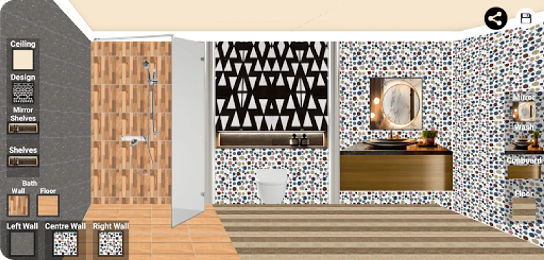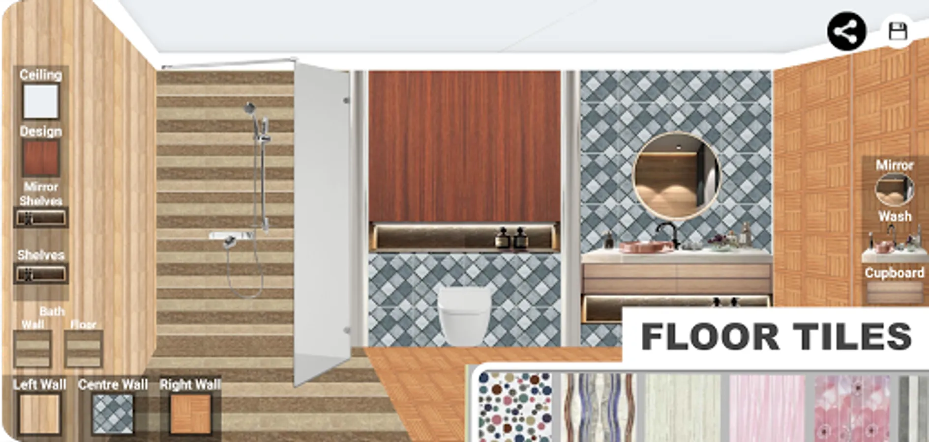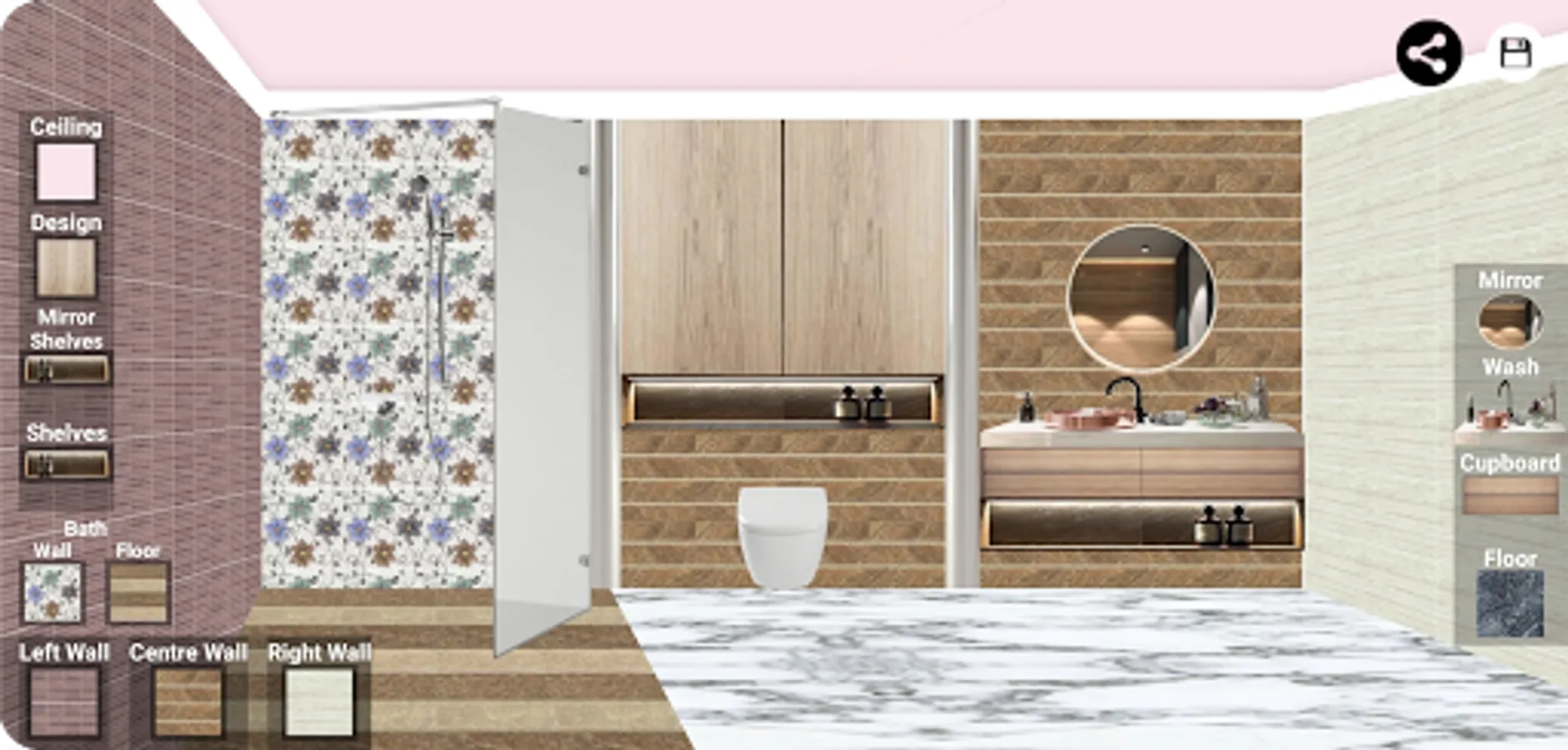 Bathroom Tiles design - Color combination - Design Editor design bathroom with lot of textures ,color ,tiles,Granite,marble,shower,tub,Washbasin, mirror, models