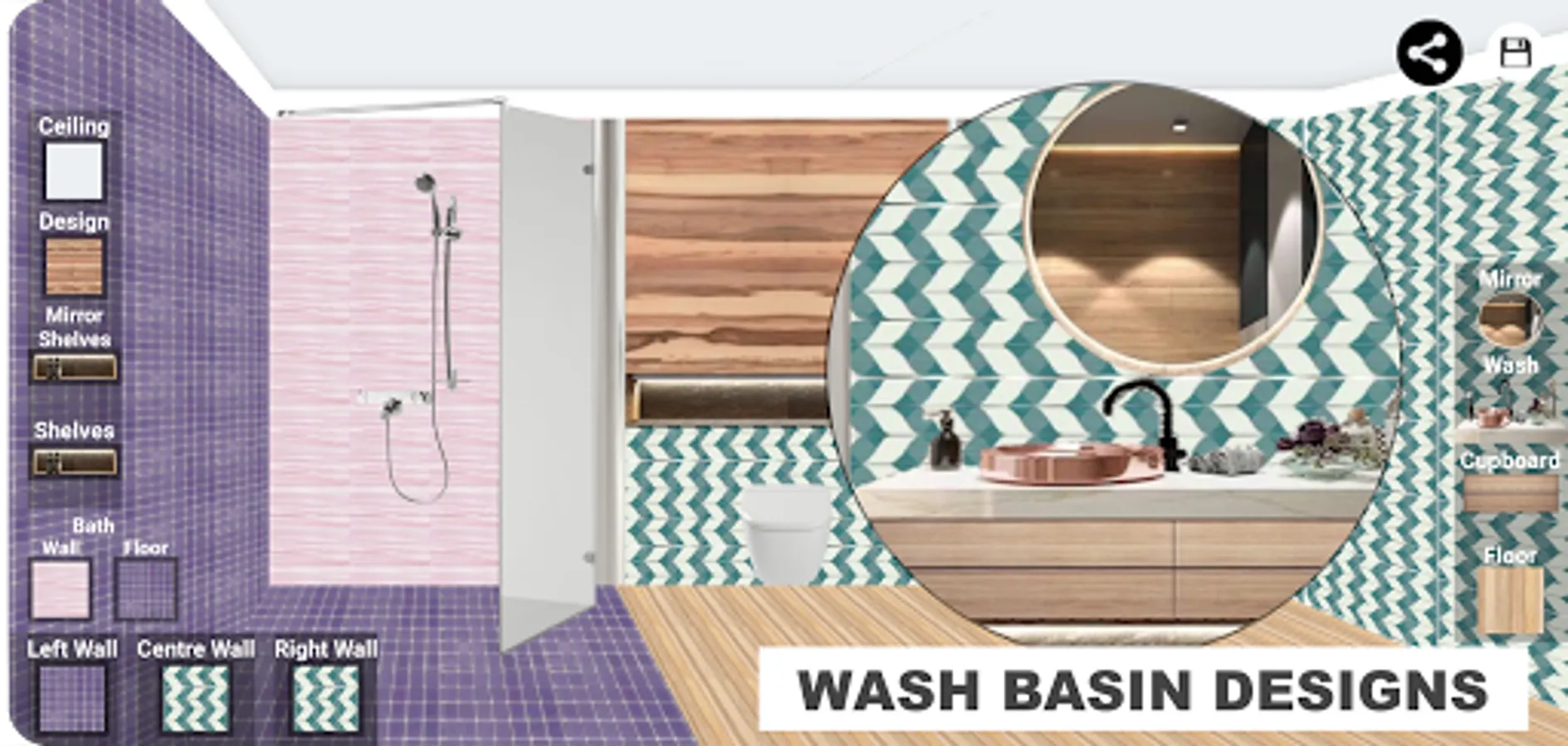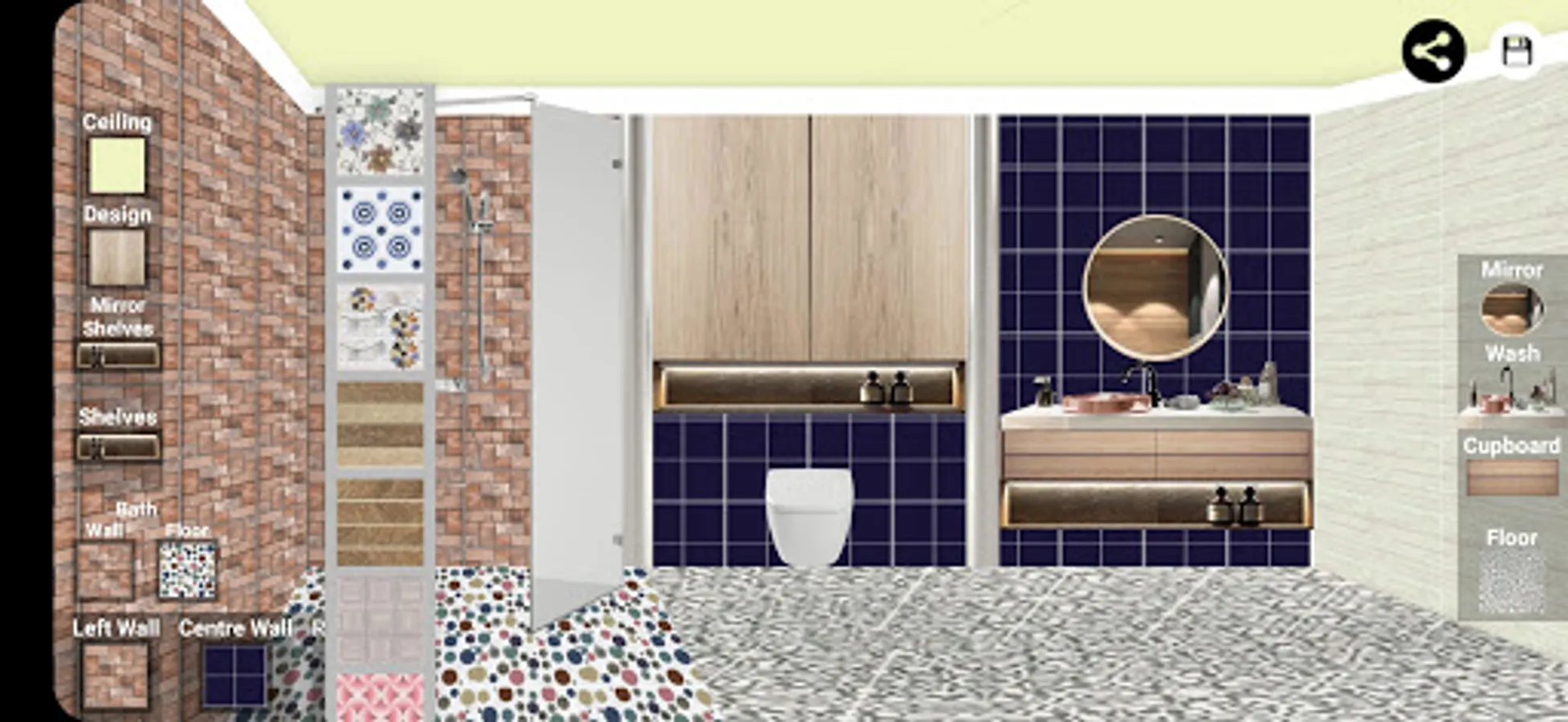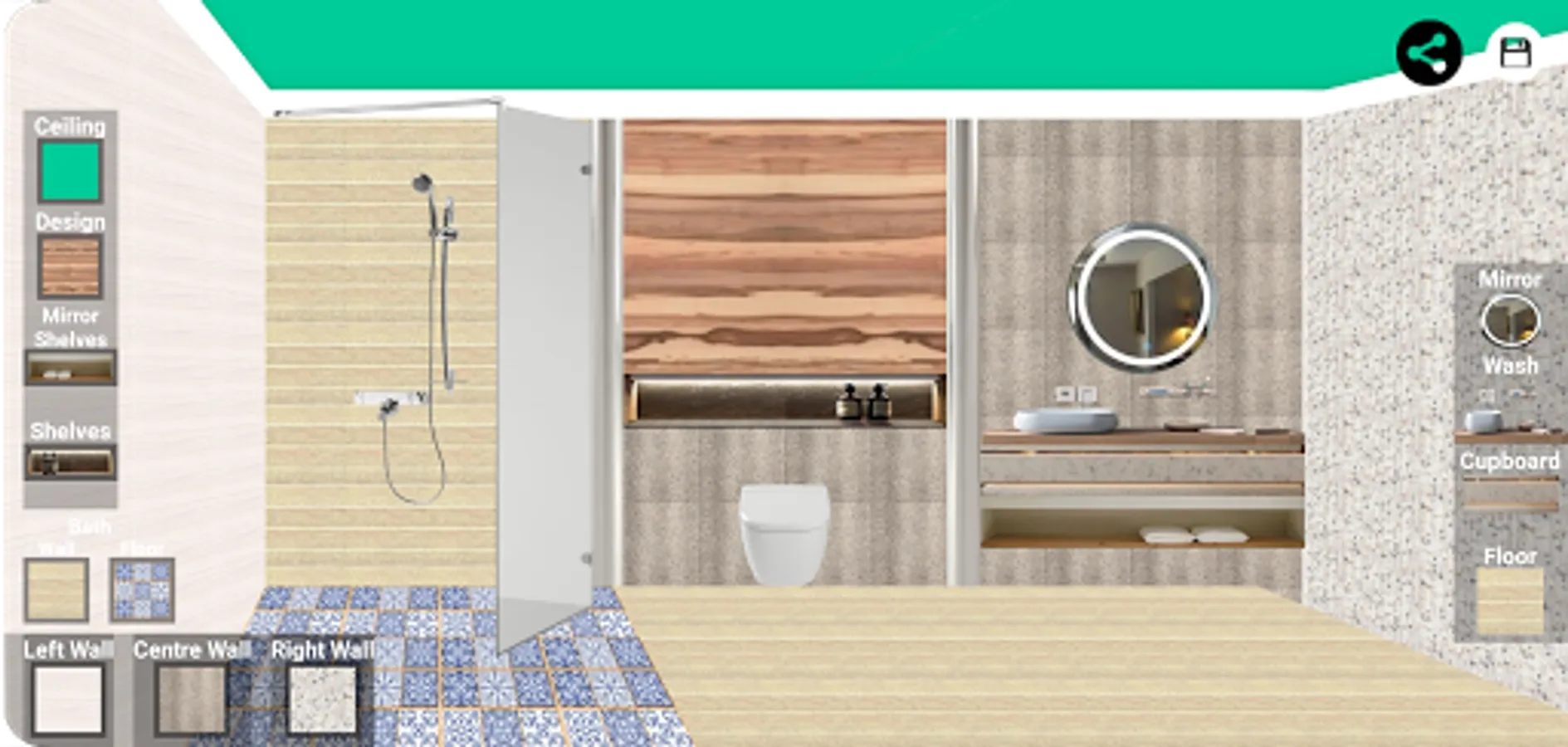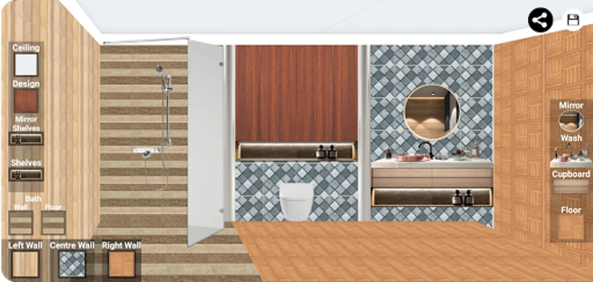 Bathroom Tiles design - Color combination - Design Editor design bathroom with lot of textures ,color ,tiles,Granite,marble,shower,tub,Washbasin, mirror, models