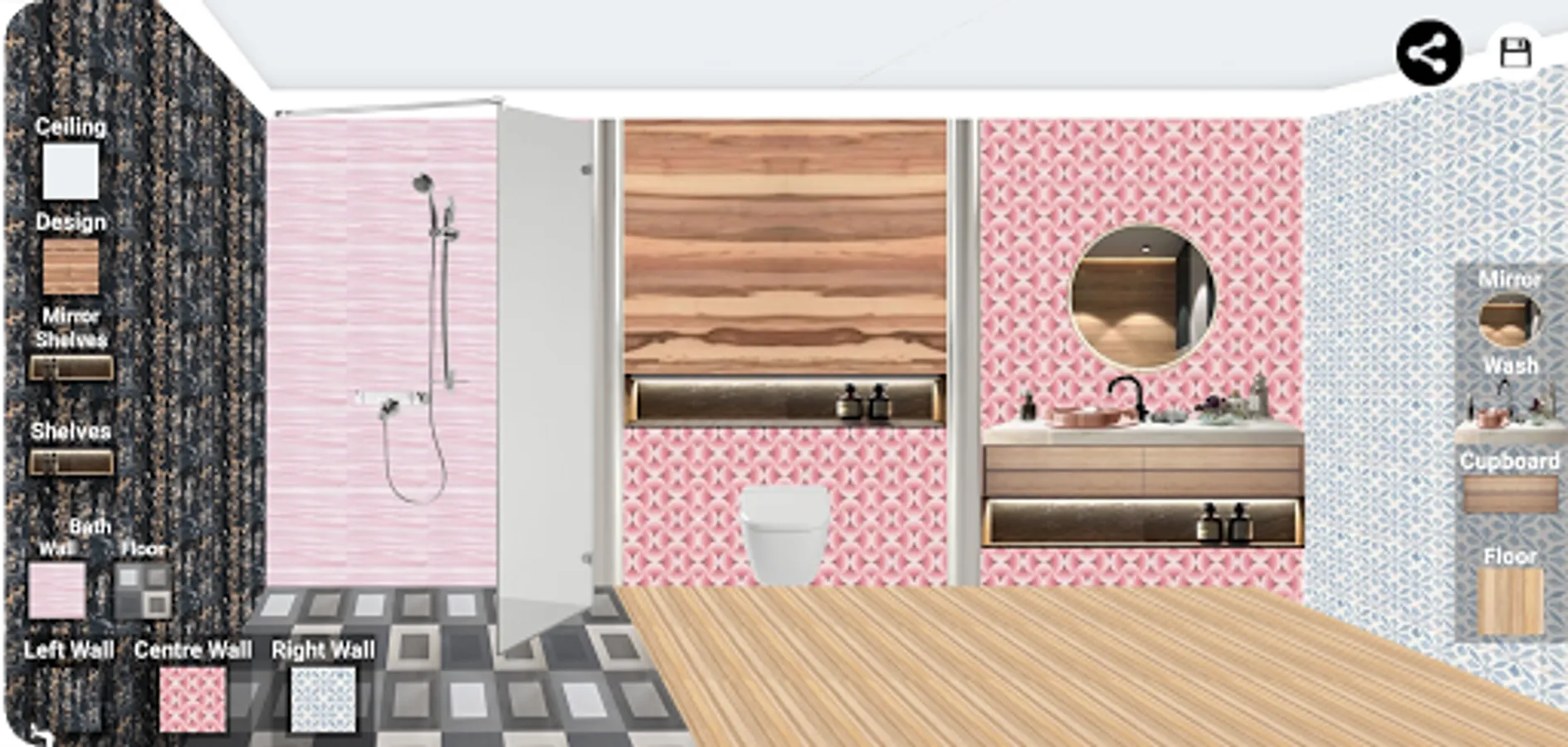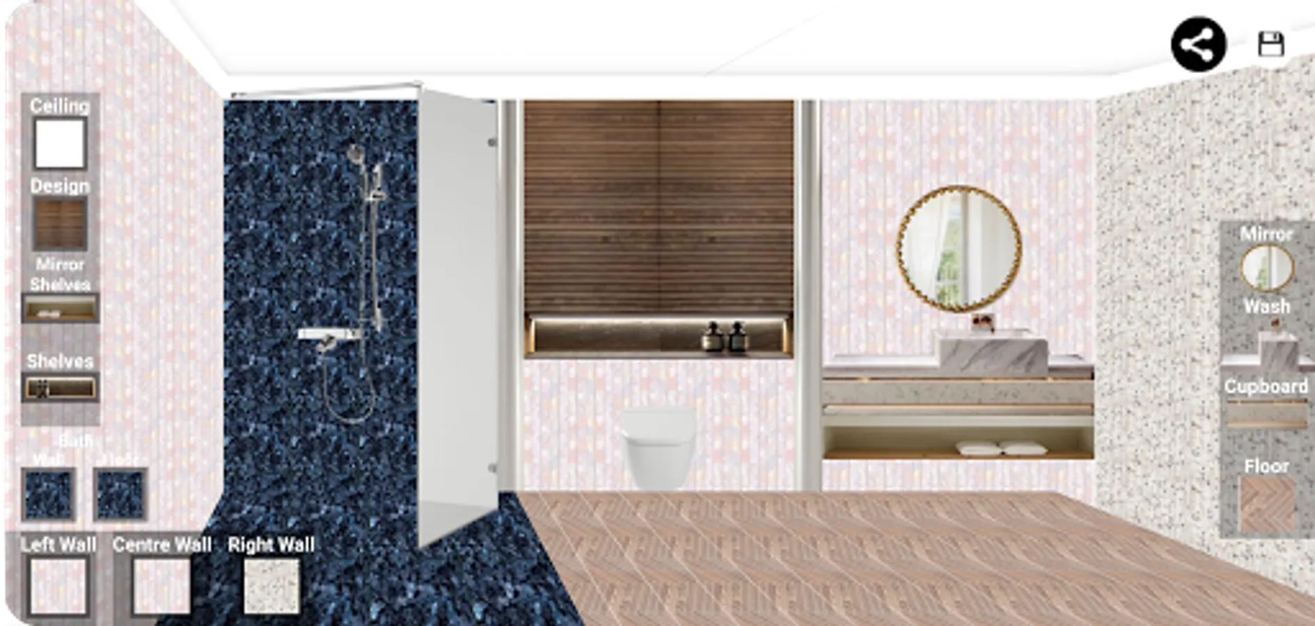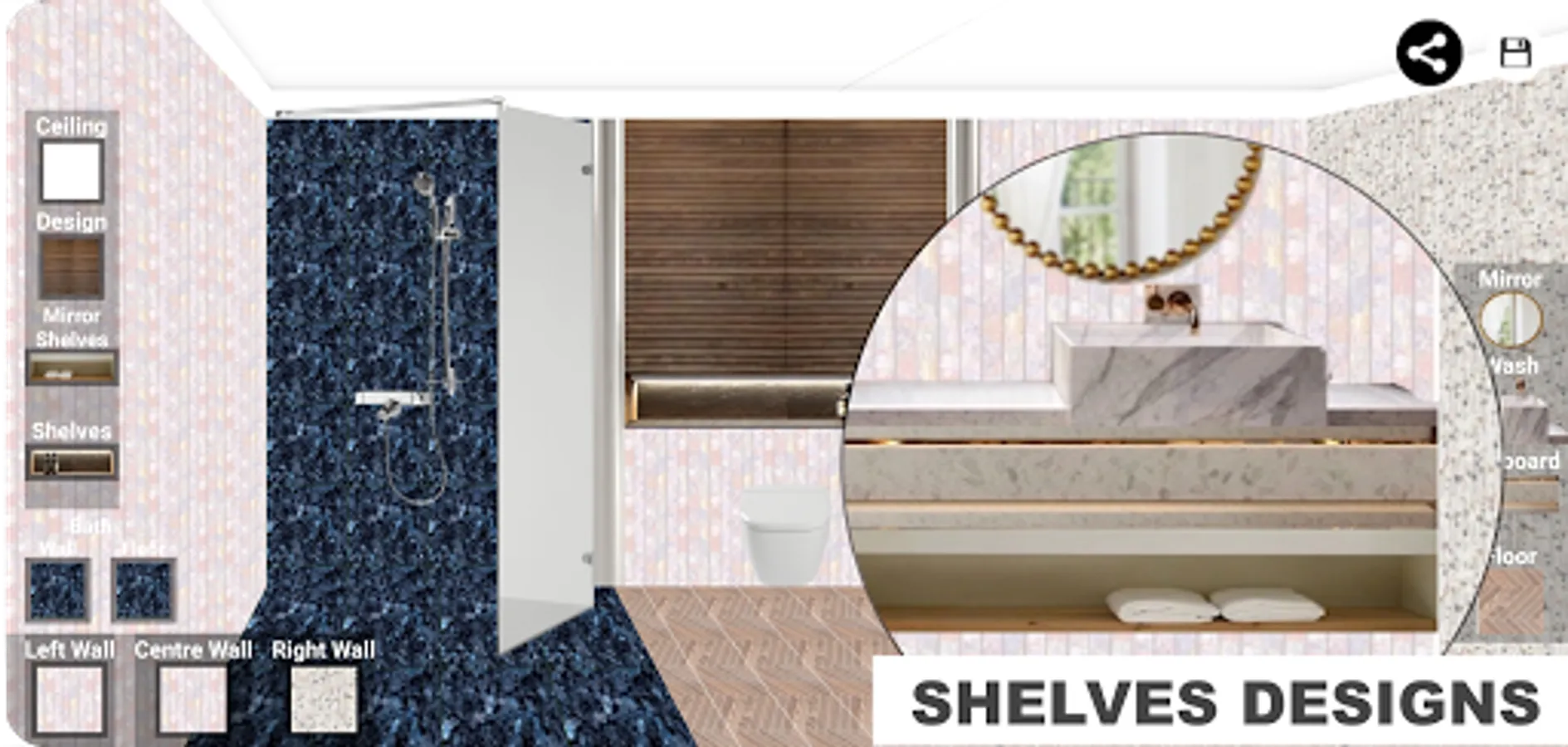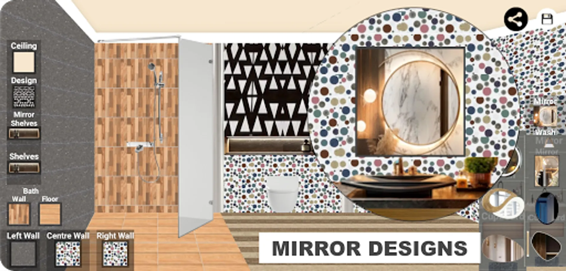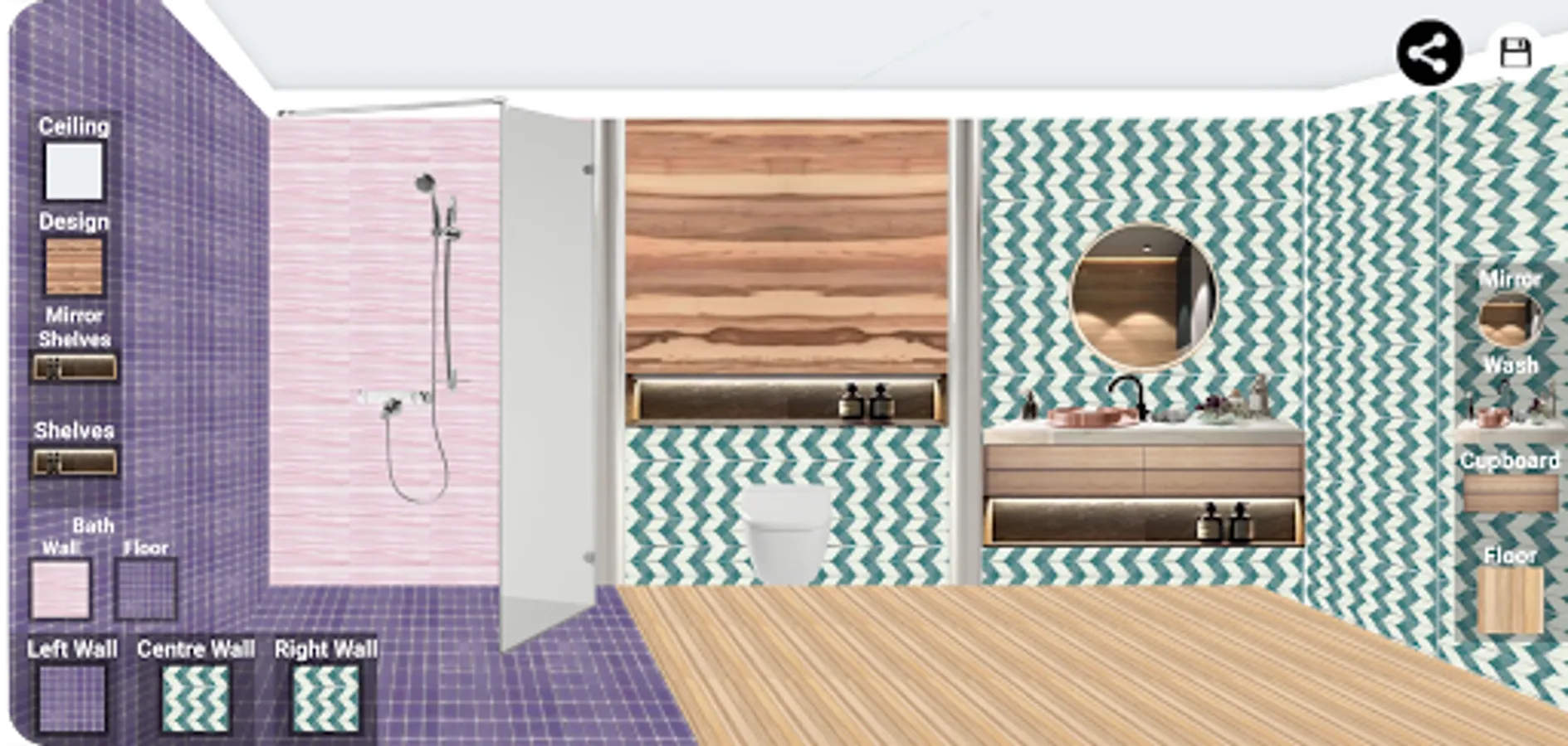 Bathroom Tiles design - Color combination - Design Editor design bathroom with lot of textures ,color ,tiles,Granite,marble,shower,tub,Washbasin, mirror, models