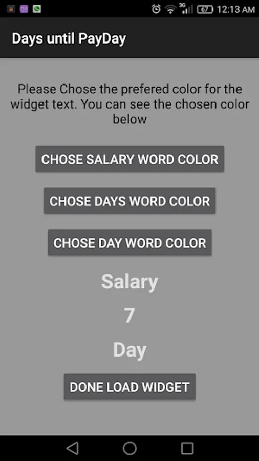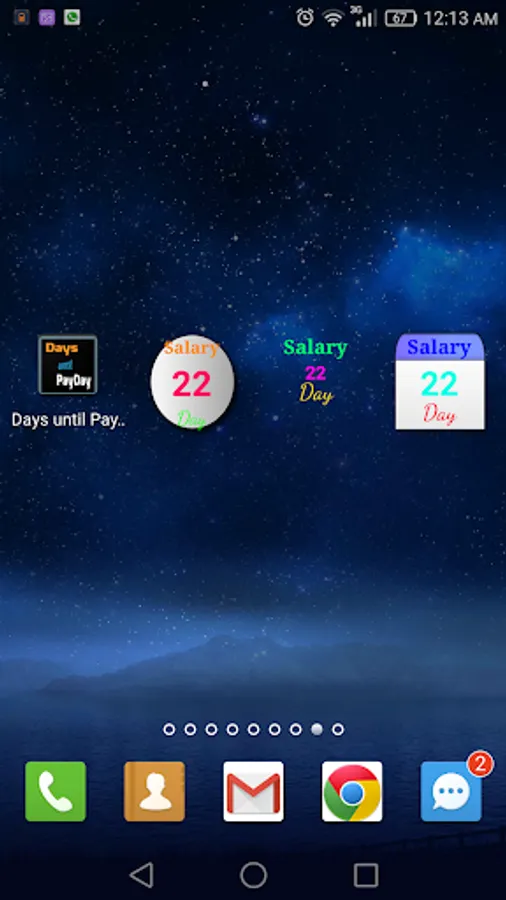 you can use the Widget to show the time until your Payday ( Salary ) on your home screen