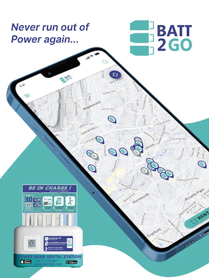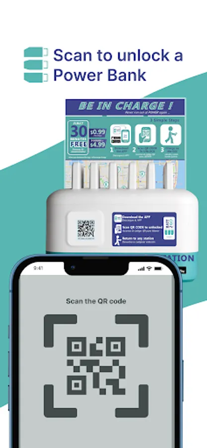 Simply download our app, quickly locate a Rental Station near you or locate your favorite venue, scan the QR on the Rental Station and a fully charged battery (power Bank) with built-in cables will be deployed and ready to use. Once used you can return it at any Rental Station in the United States, that’s right… Any Rental Station in America!... all for a low cost of $0.99 per hour or $4.99 for the whole day.