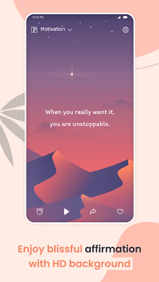 You can create the affirmation quotes and add them to the custom. Set the auto play timer to play the quotes. There is an option to enable background music with a huge collection of music.