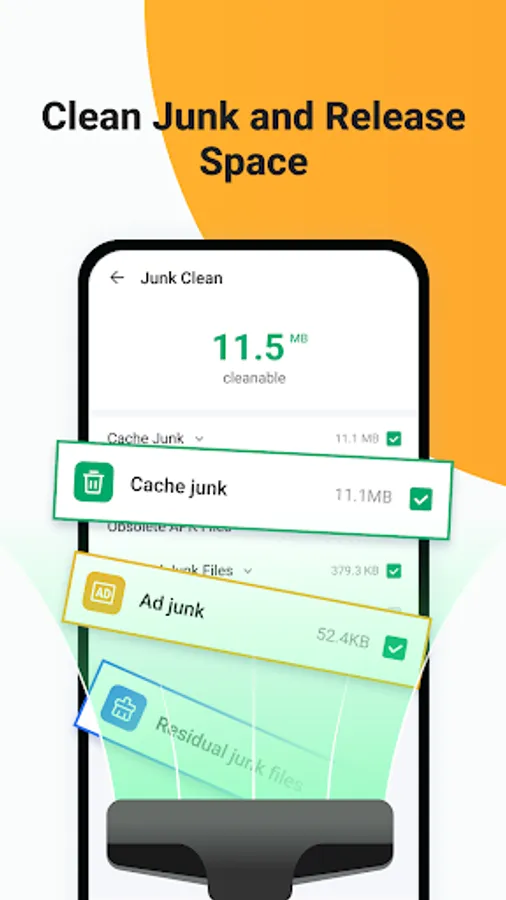 ✔ Junk Cleaner - Clean out any useless junk from your device e.g. app data, residual junk