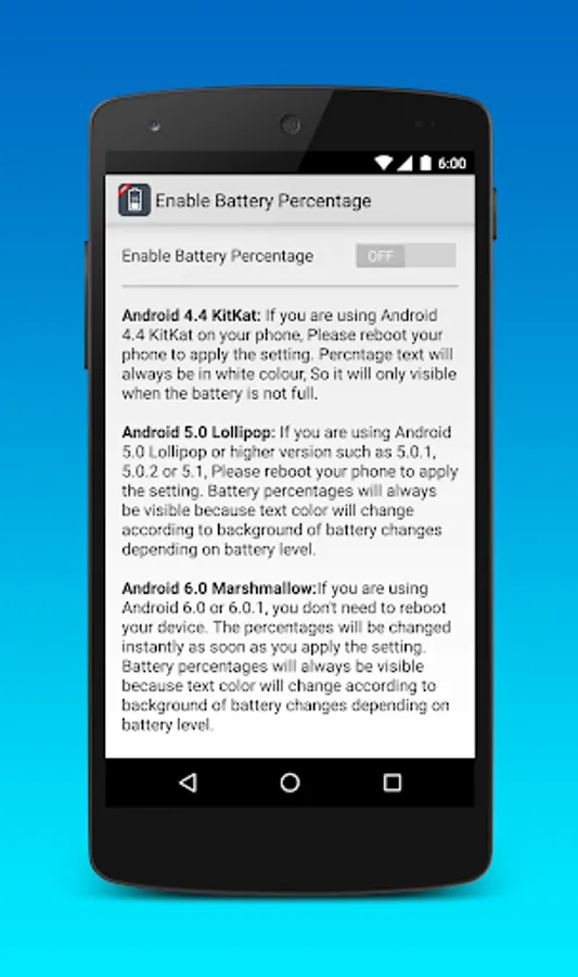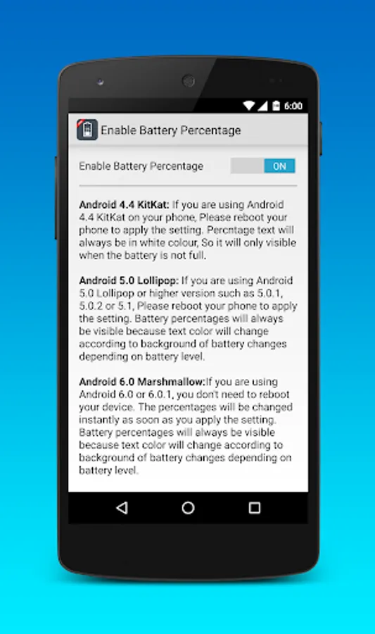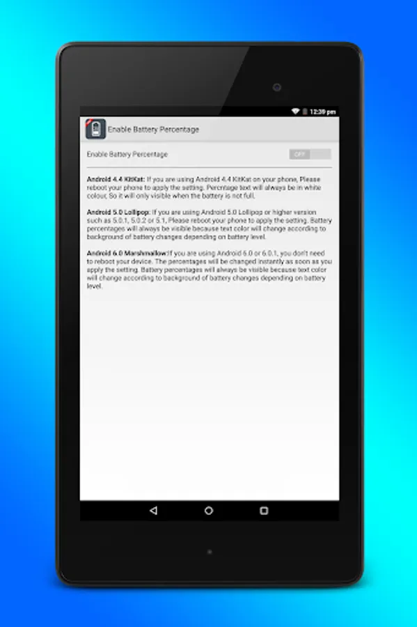 Best Android app to Enable Battery percentage feature on Status Bar.