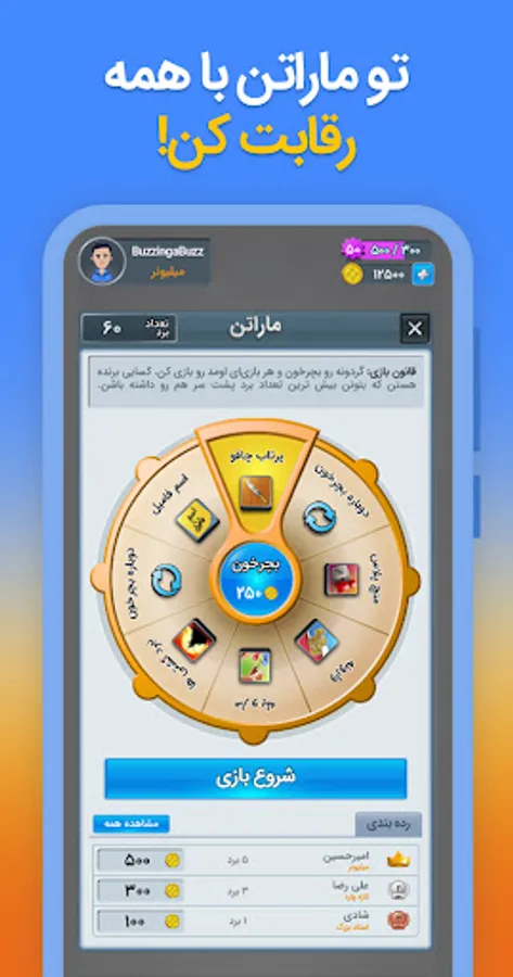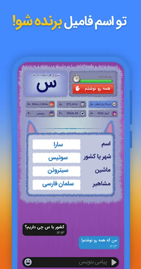 تازه میتونی تو رویدادهای متنوع روزانه هفتگی شرکت کنی تا برنده لیگ کلمه بازی جدید اسم فامیل یا ماراتن بشی جایزههای زیاد بگیری. تو این بازی جدید ایرانی یه عالمه امکانات هست که میتونی با دوستان یا فامیل ازشون استفاده کنی.