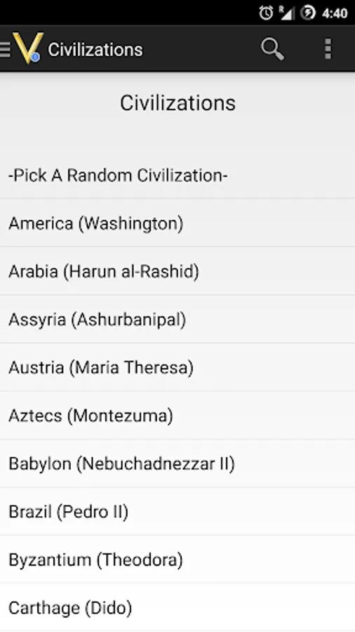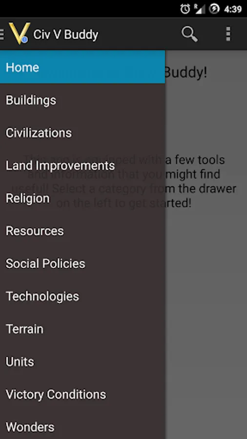 Civ V Buddy is an unofficial companion app to help make your favorite turn-based Strategy game, Civilization V, easier to play! At first designed to make random civ selection less of a headache, this app has since expanded to provide loads of information at your fingertips!