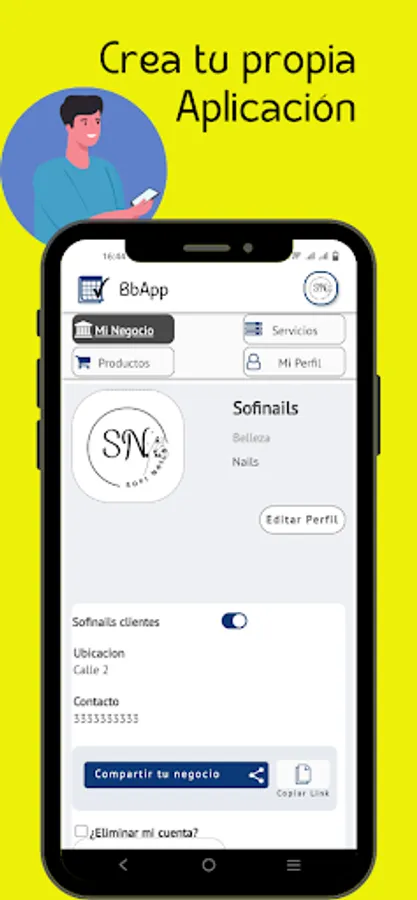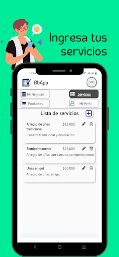 In your profile you can customize your business, services, products and schedules, as well as create the agenda of your collaborators and keep track of the income generated by each completed appointment. This and much more with BbApp.