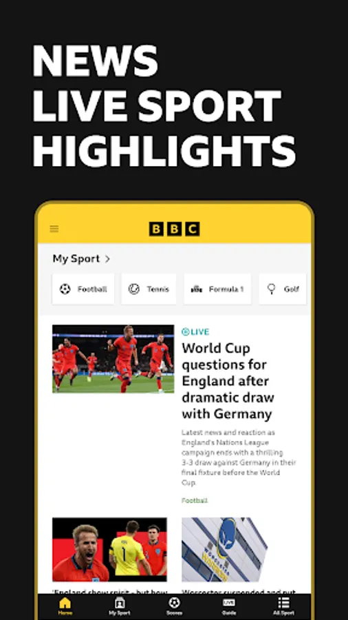 The official BBC Sport app offers the latest sports news, scores, live sport and highlights. It's the best way to follow all the latest sporting action!