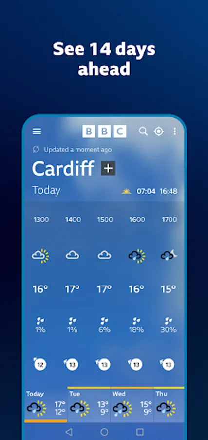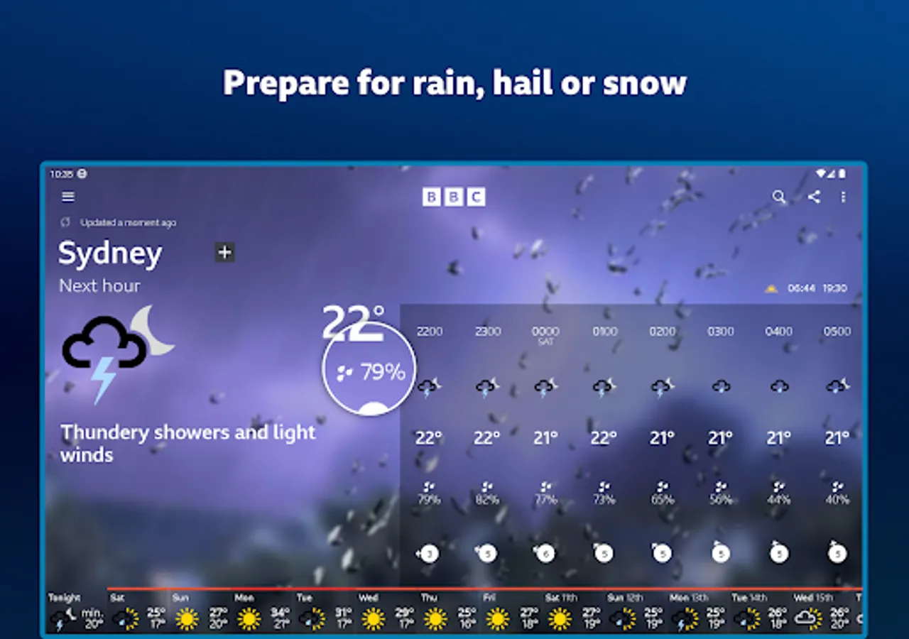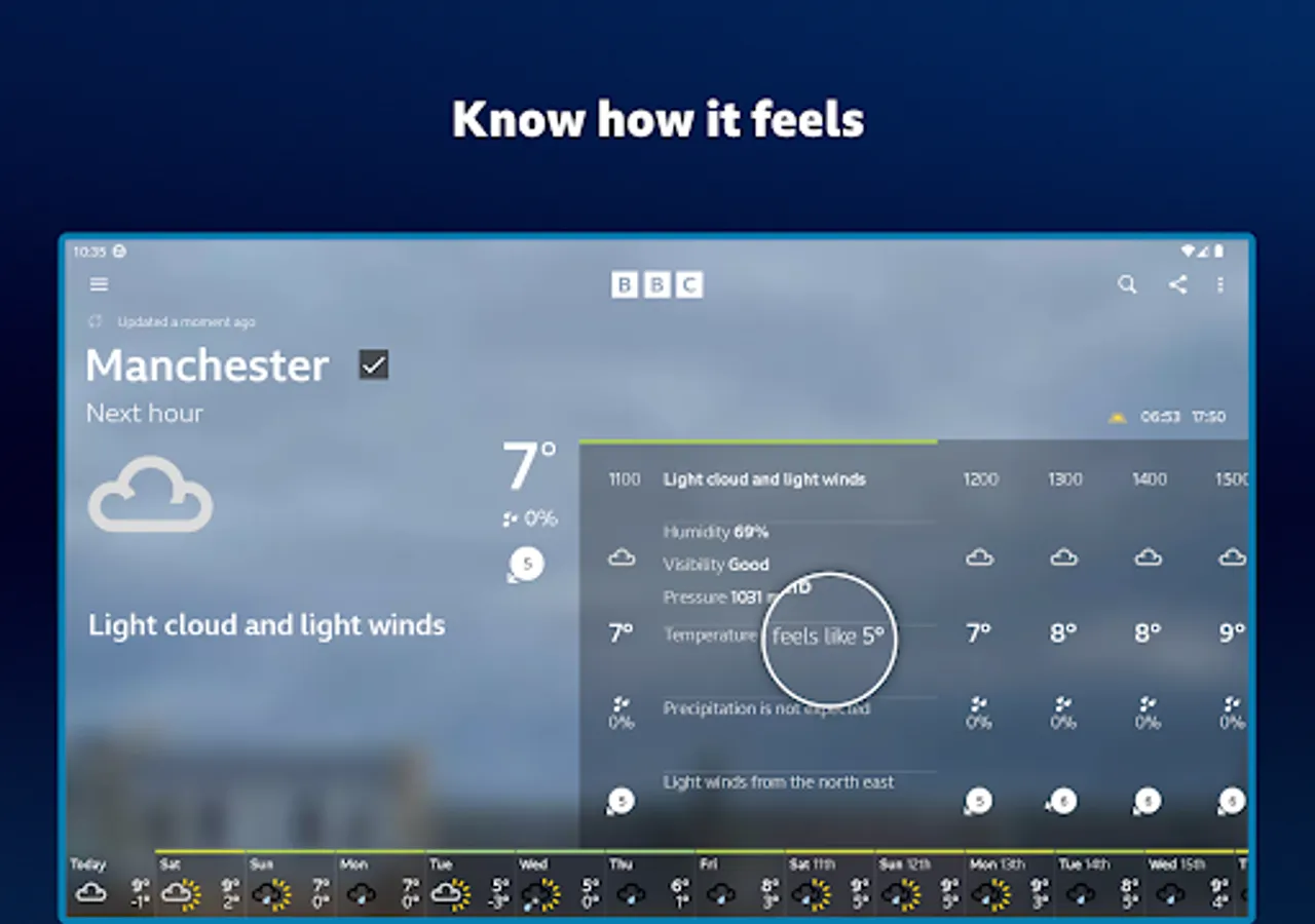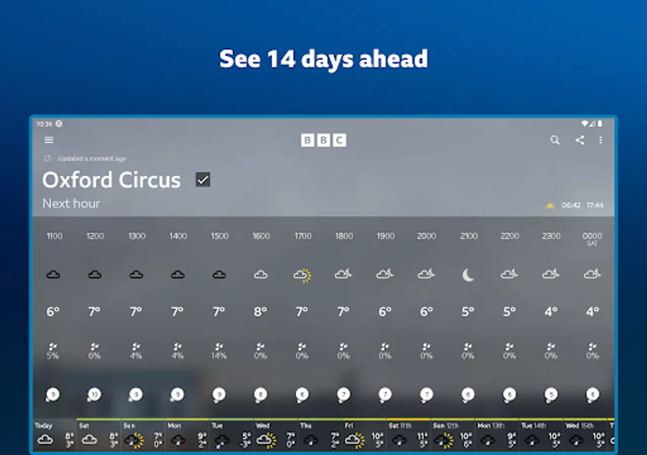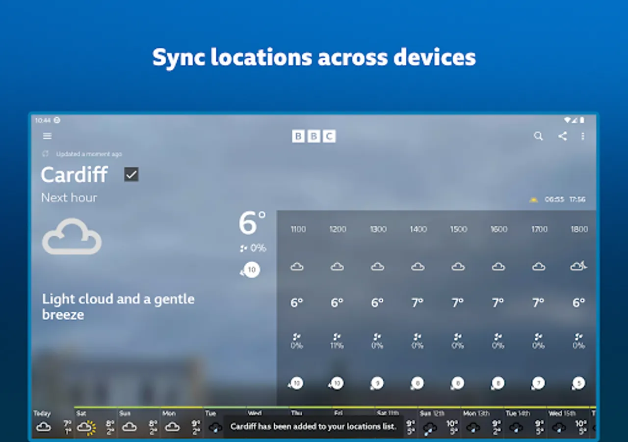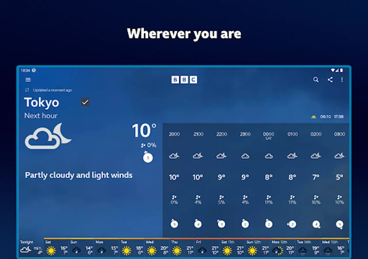 Wherever you are, and whatever your plans, you're always prepared with the latest weather forecast from BBC Weather. Easy to understand, with hourly forecasts for tens of thousands of locations around the globe.