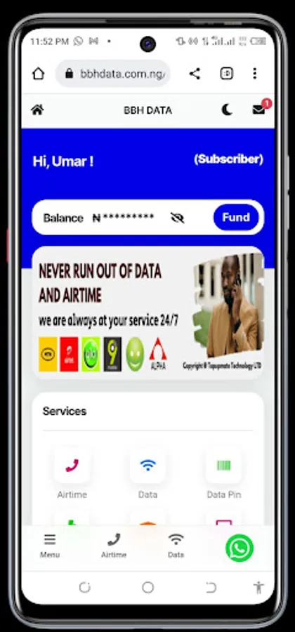 Nigeria's No.1 Platform For Internet Data Purchase, Airtime Topup, TV Cable Subscription & Bill Payment.