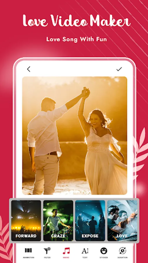 Love Video Maker App is a professional video effect editor that will help you create wonderful stories of your love with Romantic Love video themes.