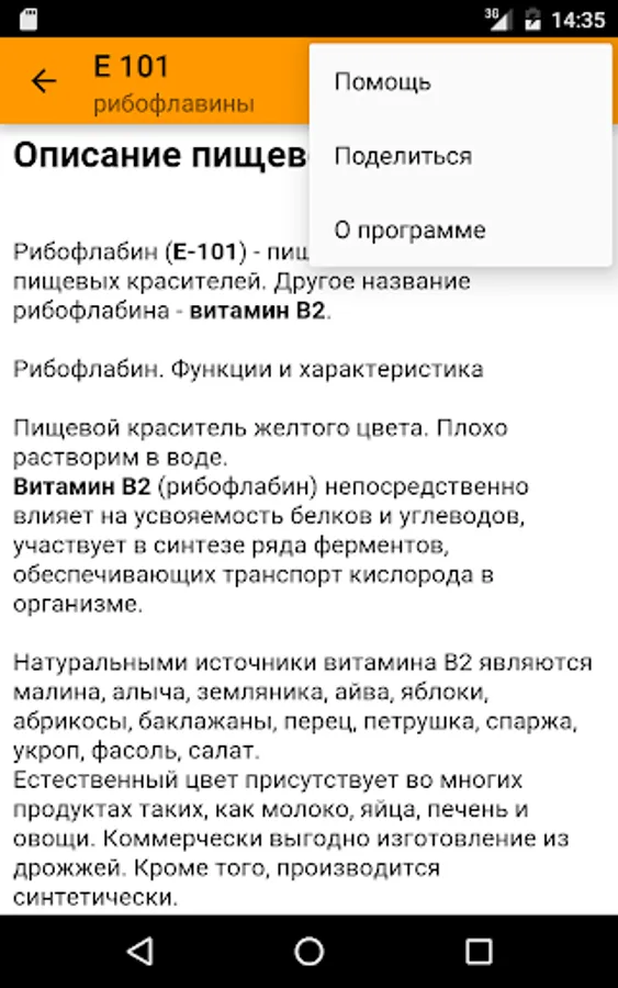 The program is an offline guide supplements with the code "E". For the classification of food additives in the EU developed a numbering system (operating since 1953).