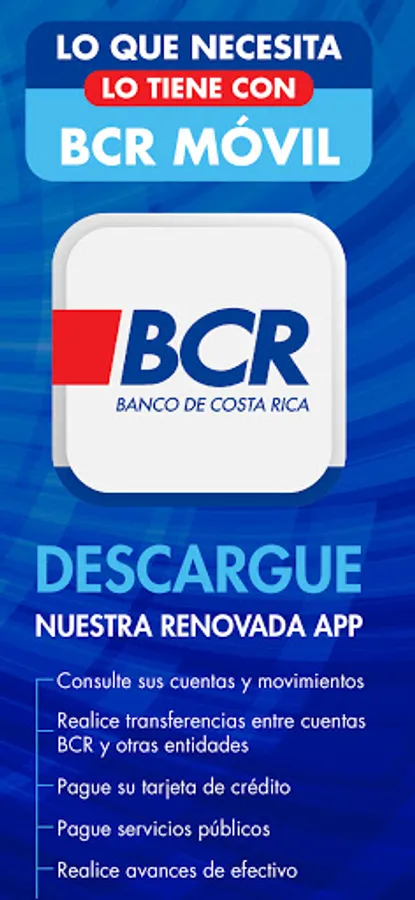 For any questions, contact us: CentroAsistenciaBCR@bancobcr.com or call (+506) 2211-1111.
