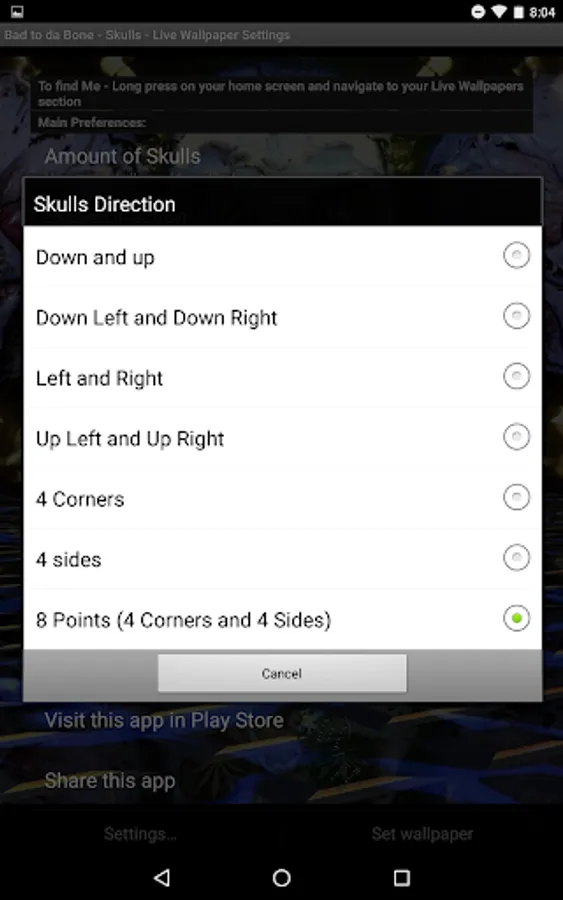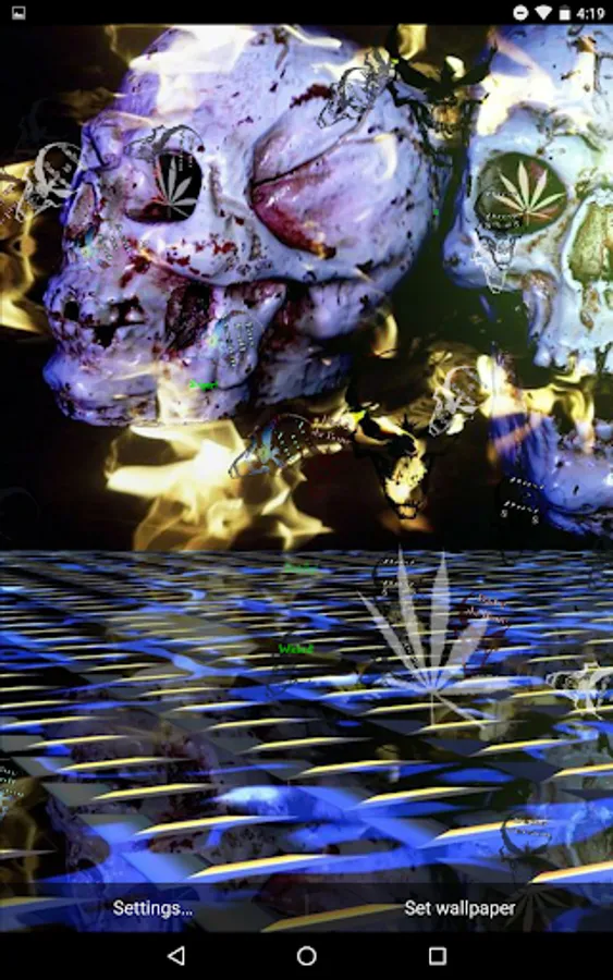 This is an enhanced version of the "SS LWP' series (now discontinued). The floating skulls in this version have a slow spin and a slight variation in the chosen speed and direction. They spin faster and shrink away when tapped, prompting another picture or theme word to pop up in their place. A lot more fun and much better to look at. ;-)