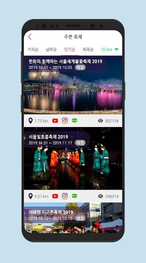 1) 현재 내 위치 중심의 진행중 또는 진행예정인 축제 정보 제공