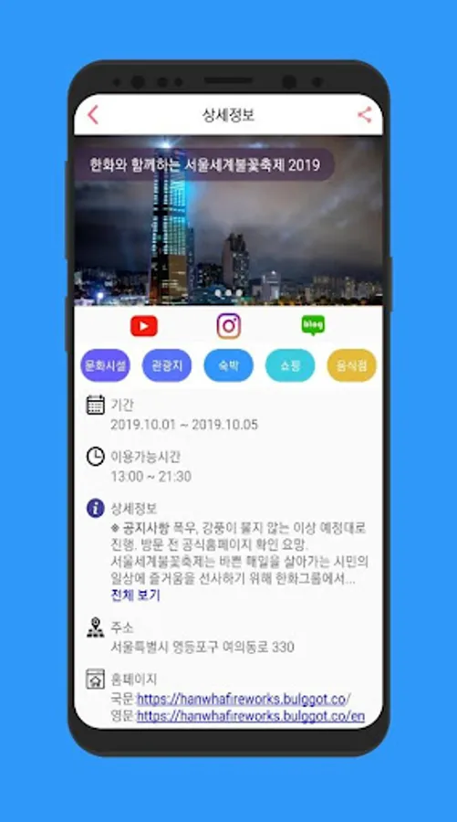 3) 축제의 인근정보인 관광지, 숙박, 맛집 정보 제공