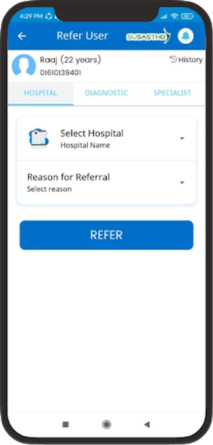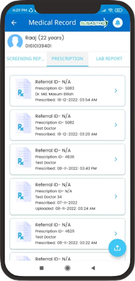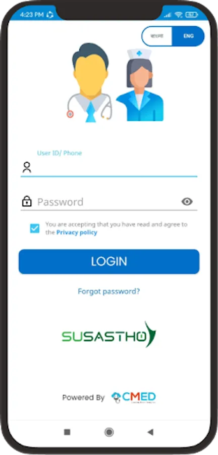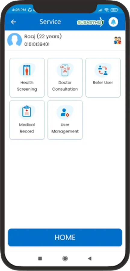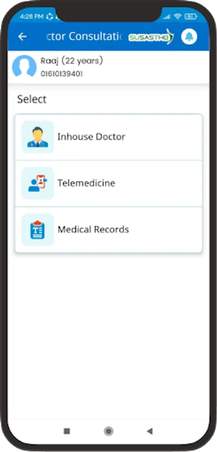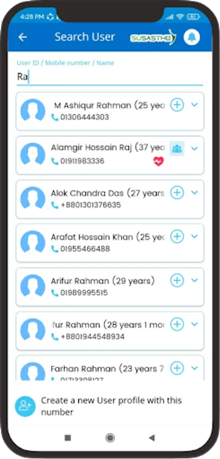 The Susastho Agent App for Smart Health Agents allows them to provide digital health services to everyone with a Susastho Health Account. For individuals who don't have an account but are interested in receiving digital health services, this app enables the agent to create one for them.