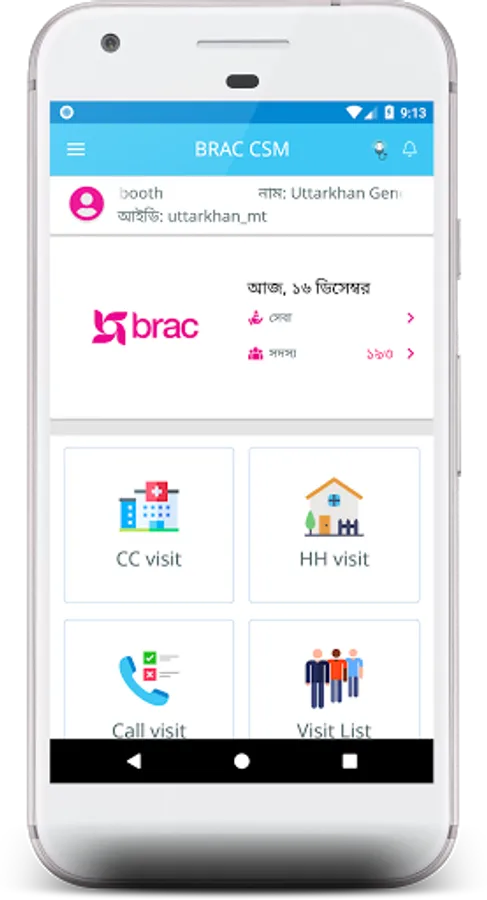 This BRAC CSM (Community Support Management) APP has been designed to support the community survey of BRAC community worker. The app will be used by the community worker of BRAC HNPP program. This app will be used to monitor the activities of community health worker and help them conduct survey in the community. The App is simple enough for the community worker to enter data so that they can focus more in delivering the service and less in data entry. The activities captured by the app will be easily visible to their line manager for monitoring and follow up.